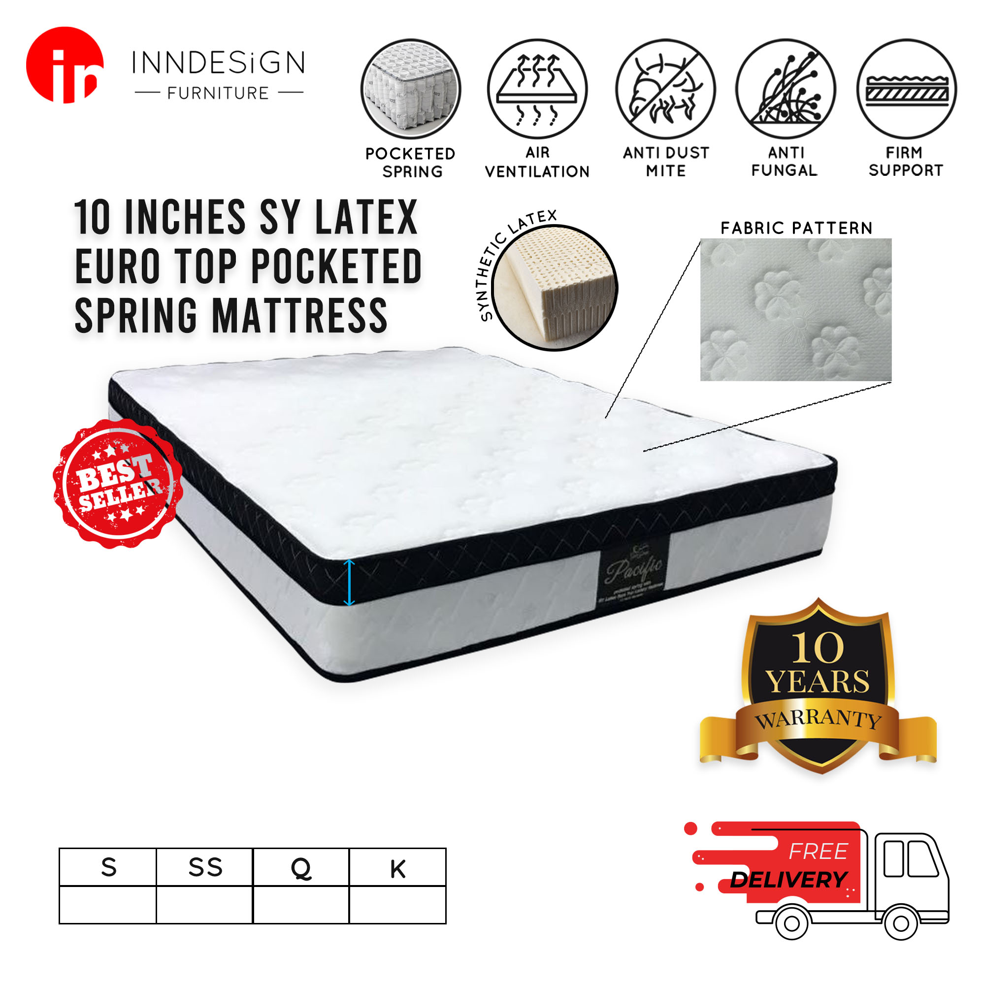 [COMBO SET] 10inch Pocketed Spring With Latex Mattress + Bedframe (10 Years Warranty) [ALL SIZES AVAILABLE]